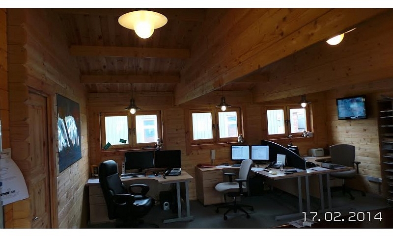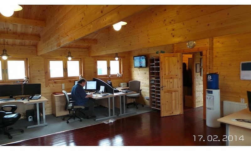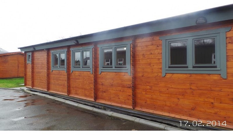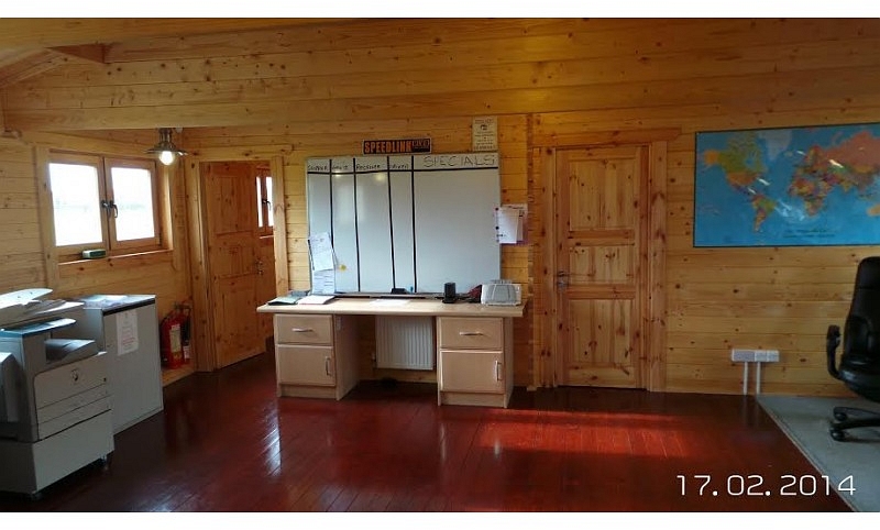 Size 12.2m x 7.5m. Total area 91.50m2 984 sq/ft. 45+100+28mm insulated double wall. Our client built and owns this office for the same price as three years rental saving them money and creating an asset for the business. Completed date February 2014 Leading Irish log cabin and log home manufacturer and distributor.
